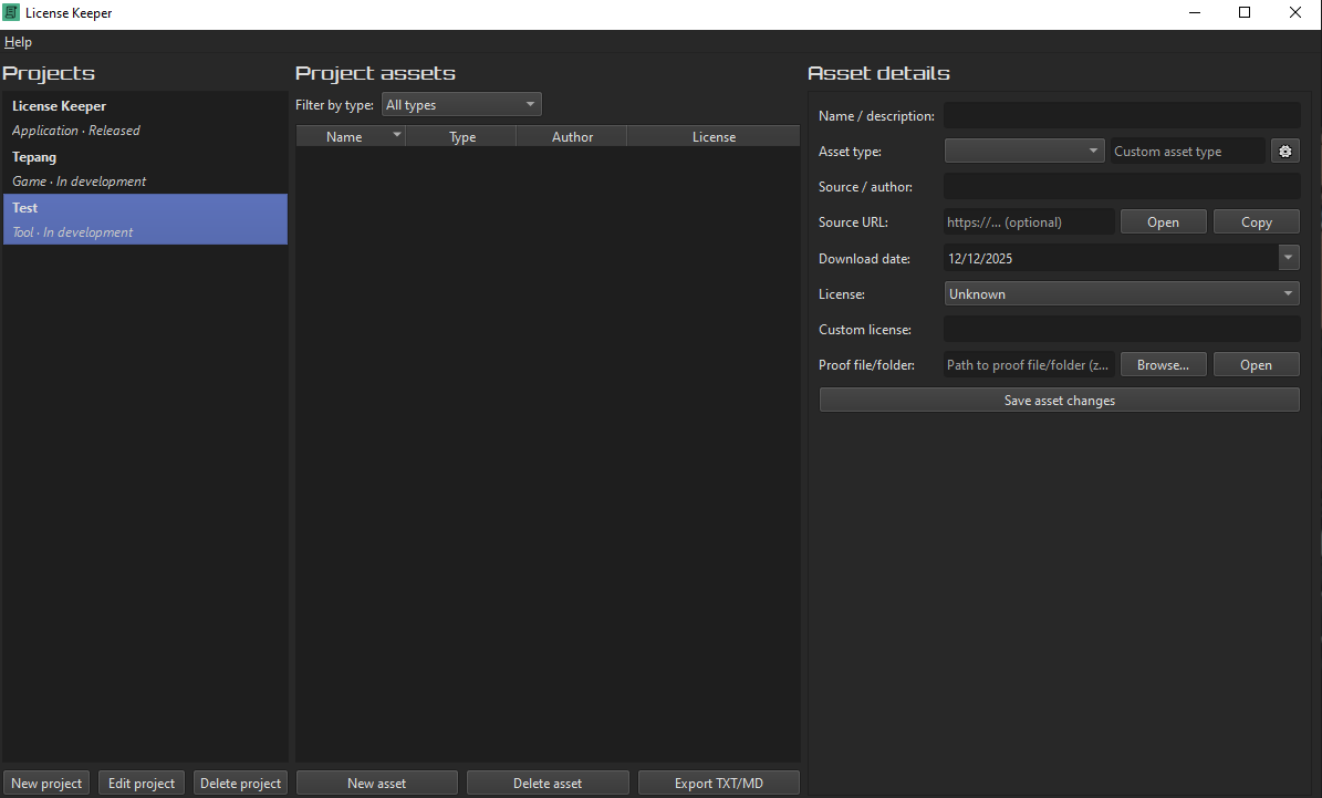 If you work with game assets, music, sound effects, fonts, code snippets or any downloaded resource, this tool keeps everything organized and legally clear.